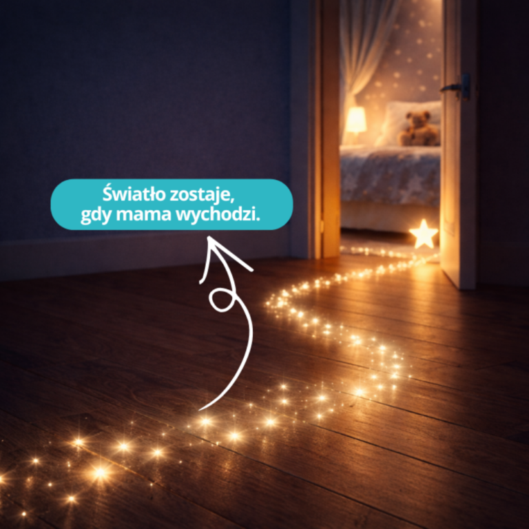 Dlatego stworzyliśmy delikatne światło, które nie zastępuje obecności mamy, ale pomaga dziecku spokojnie przejść do snu, gdy zapada noc.