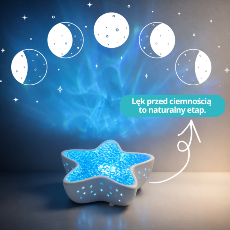Możliwość wyboru koloru i intensywności światła pozwala stworzyć dokładnie taką atmosferę, jakiej dziecko potrzebuje — bez przebodźcowania i bez strachu.